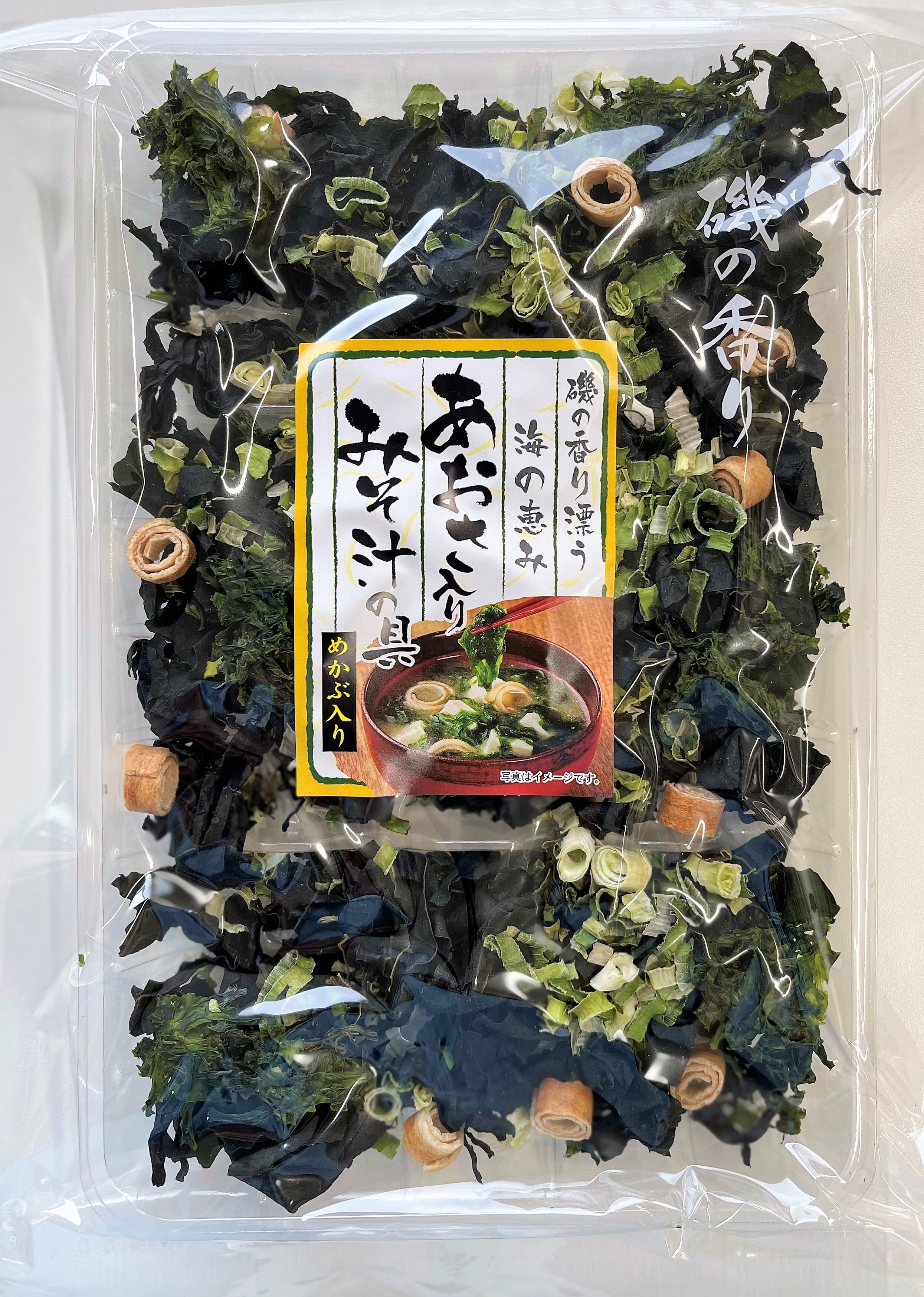 伊勢志摩産の海の恵みを受けて育った、磯の香り豊かなあおさと、めかぶのコリコリとした食感が一緒に味わえ、沸騰寸前のお味噌汁に、一つまみ商品を入れて頂くだけで、簡単に美味しいお味噌汁がお召上がり頂けます