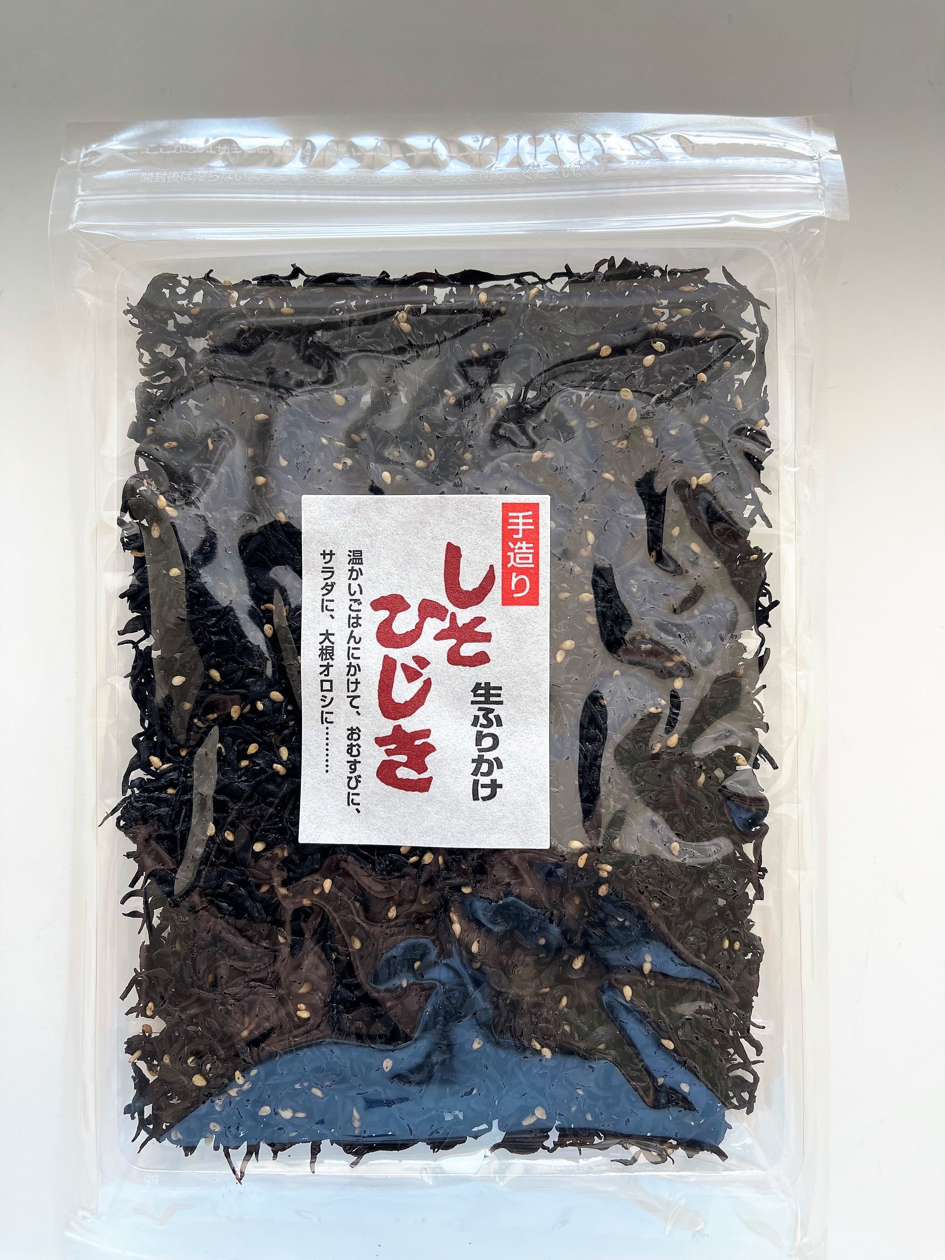 磯の香りをそのままの『ひじき』にしそを混ぜました。温かいご飯にそのままふりかけるだけで、しその香りが食欲をそそります。